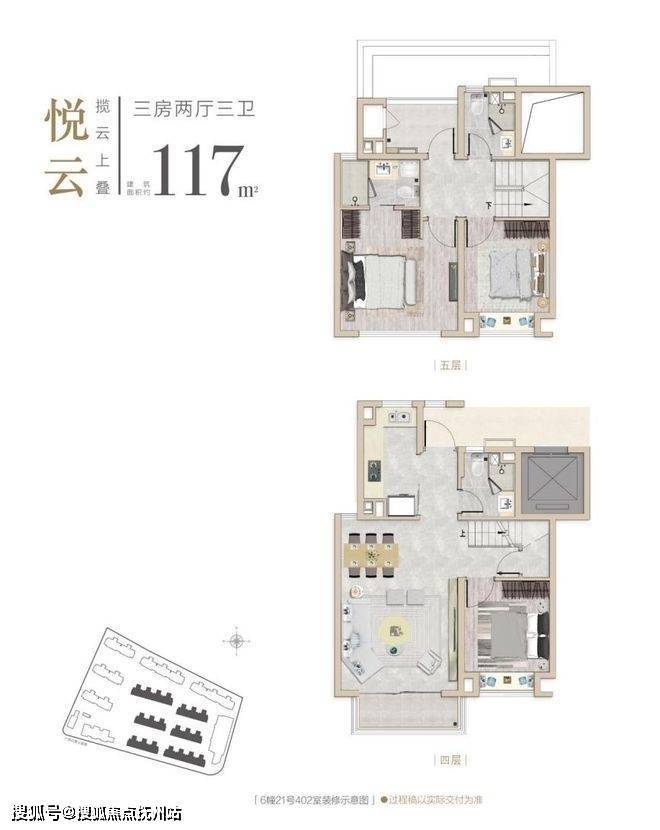 建面约117m²3房2厅3卫(上叠)