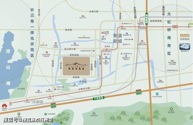 项目与17号线淀山湖大道站直线距离约2.5公里,通过17号线可直达虹桥商务区,并且能无缝换乘2/10号线,快速接驳上海市中心。
