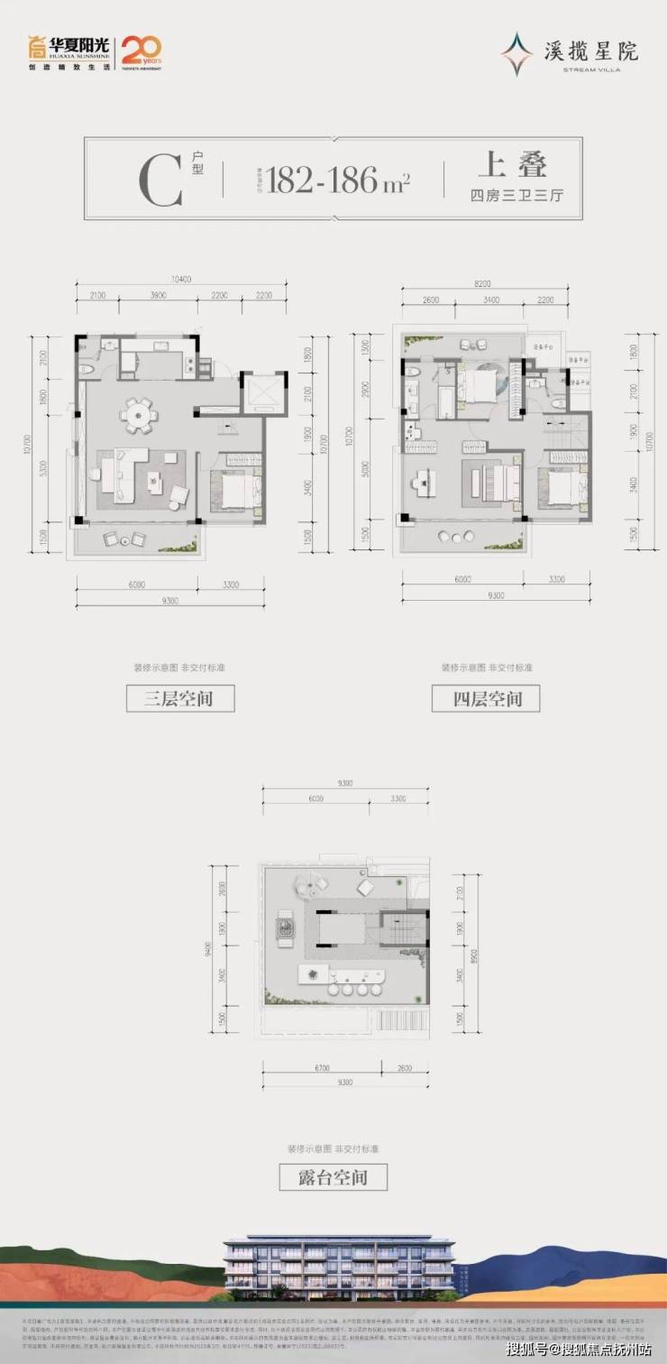 以C户型下叠为例,约18.6m南向大面宽(双层),无界风景延伸入室;270°环幕采光,尽情沐浴暖阳。在珍存的低密土地上,华夏·溪揽星院以上下双叠设计,上叠露台为伴,下叠庭院相接,双层地下室空间规划,营造更为纯粹的墅居生活享受。