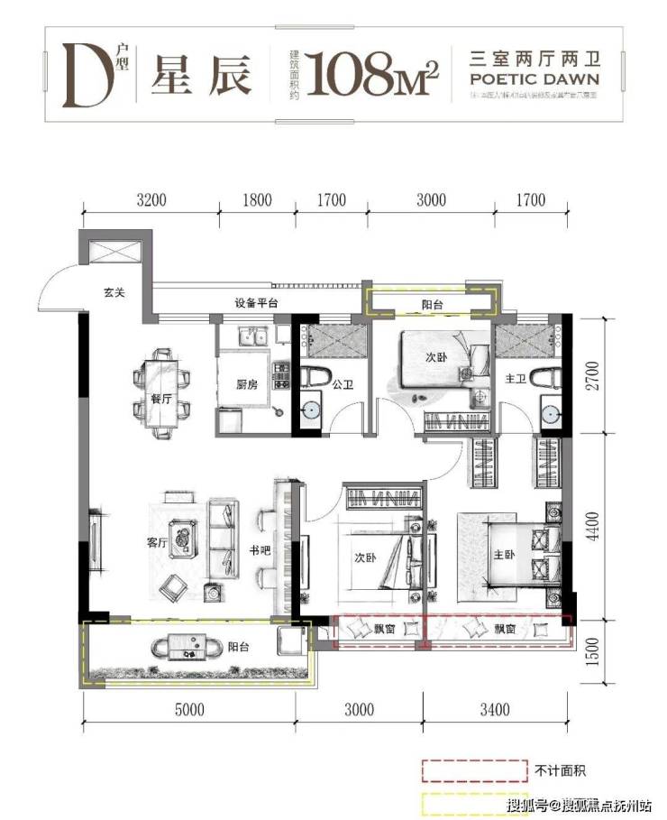 经济宽松的可以看看108m² ,三房两厅两卫设计。