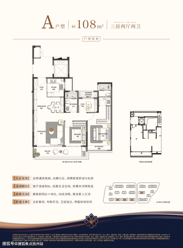 建面约108㎡刚需三房,性价比之选。三开间朝南,客厅连接双阳台,晾晒与休闲两不误,生活与实用巧妙分区。U型厨房操作空间宽敞,取物便捷;主卧带独立卫浴,私密性极佳。小户型同样实现大空间利用率,面积零浪费。