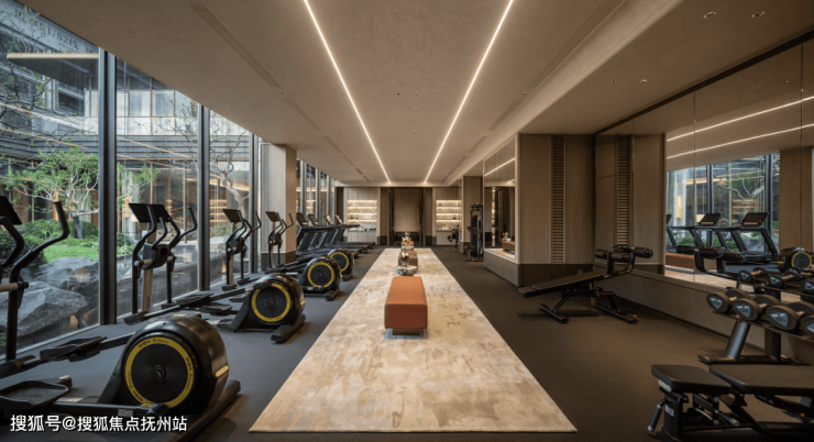 健身房的跑步机和椭圆仪放在大落地玻璃边,一边运动一边看风景,相当的舒服撒!