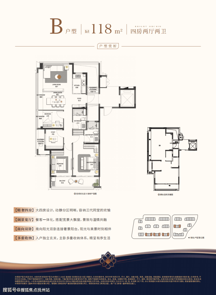 建面约118㎡刚需四房,也是性价比之选,端厅户型。