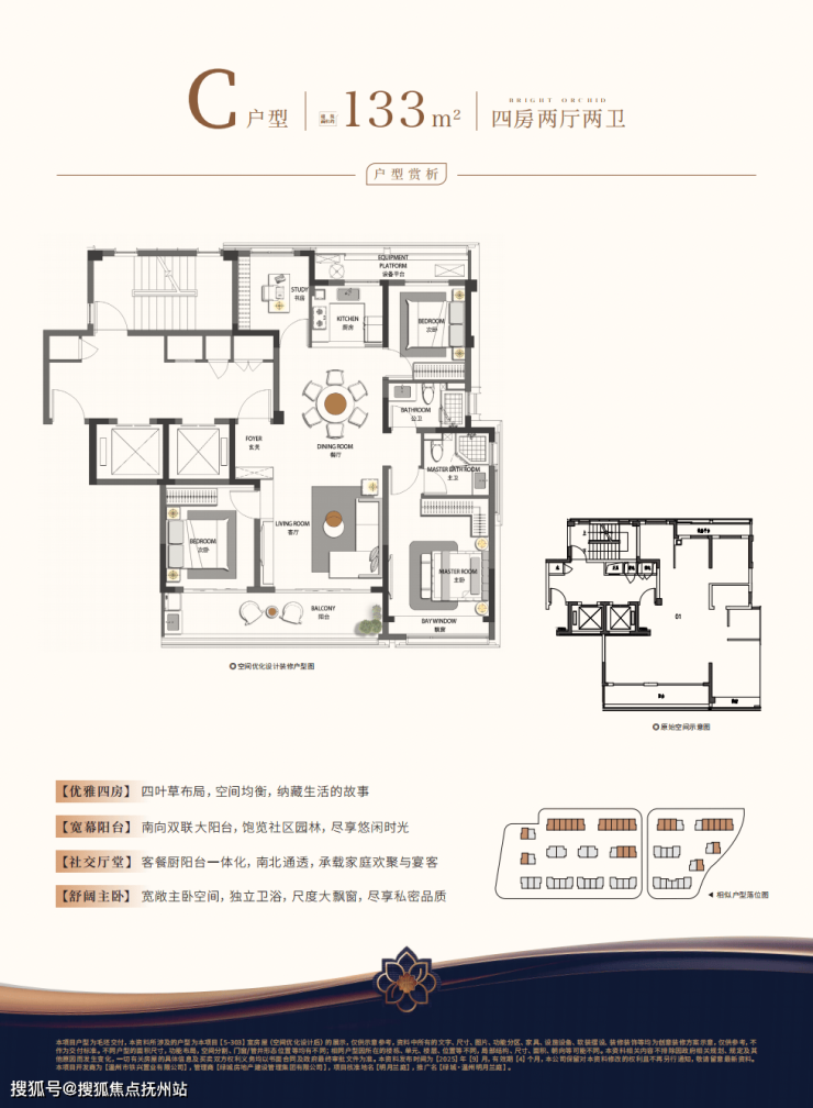 项目规划17栋12-14层的小高层洋房,792套,建筑面积约为108、118、133、143、180,5个面积段户型产品。