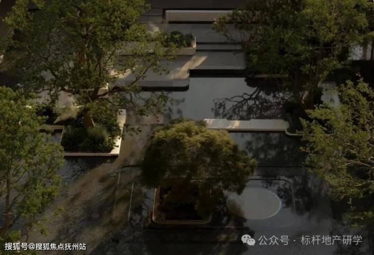 在前场景观体系,苏州招商序又围绕6幕归巢洄游序曲,创新提出将平面景观变成立体景观,通过超600㎡水院与后场归家庭院的嵌套、地面庭院与下沉庭院的垂直呼应、近两百岁名木羽毛枫的点缀,有层次地加强人与人、空间、生活的自然交往。