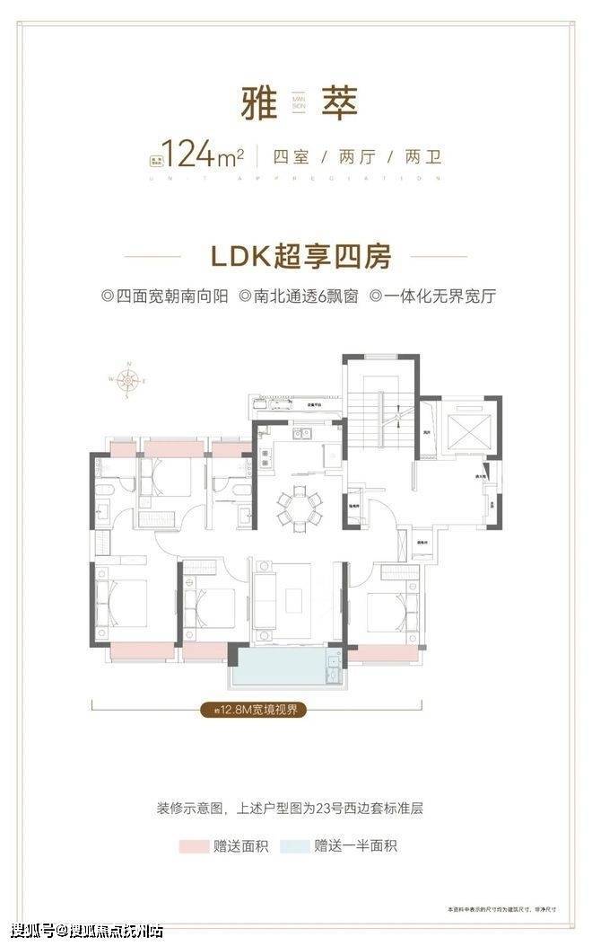 建面约124㎡的4房2卫户型,通常来说是紧凑型的户型。