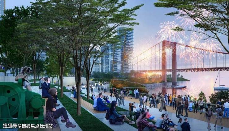 另一方面,在湾岸沿线规划了滨水公园联盟,传承土地的工业历史与文化脉络,用自然与艺术的方式打造了公园绿地,成为武汉滨江生活新标杆!
