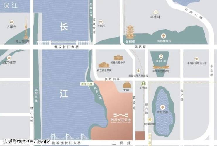 武汉长江天地位于武昌区张之洞路与临江大道交汇处,正武昌湾、黄鹤楼畔、音乐学院旁、鹦鹉洲大桥桥头堡,地理位置十分优越。