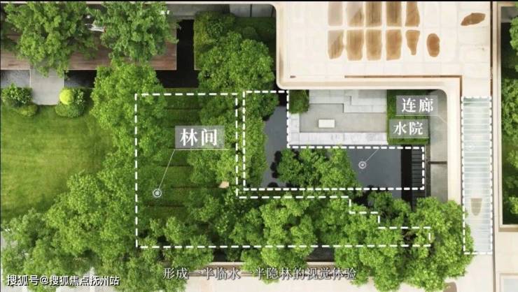 社区前厅作为“第一印象”,既要体现仪式感,又要营造自然与艺术的融合。我们以"水院连廊映乌桕,法棍种植隐林间"为植物设计理念,采用“水院+连廊+林间”的三段式布局,形成“一半临水,一半隐林”的视觉体验。
