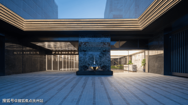 穿过大堂是由水景和艺术连廊组成的围合景观动线,带来沉浸式游园体验。