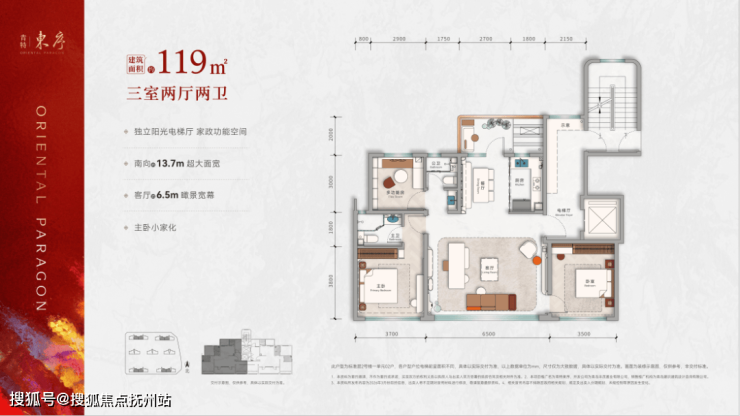 119㎡:13.7米四面宽、6.5米横厅,LDK一体,通透采光拉满
