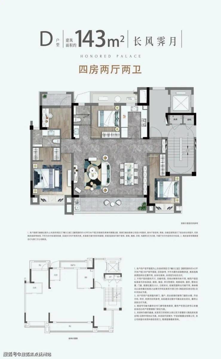 建筑面积约135-143㎡墅境洋房(6-11层),匠心雕琢,方正户型,南北通透,布局清晰合理。