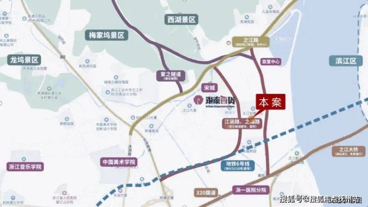 项目周边立体交通覆盖,路网丰富,彩虹快速路、绕城高速、长深高速三大高架,紫之隧道、之江路、之江隧道(在建中)、之浦路快速路网,直线距离约600米地铁6号线之江文化中心站,便捷畅达杭州各大核心。