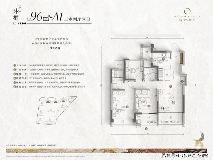 建面约96方三房两厅两卫: