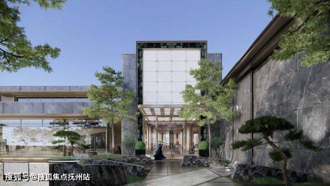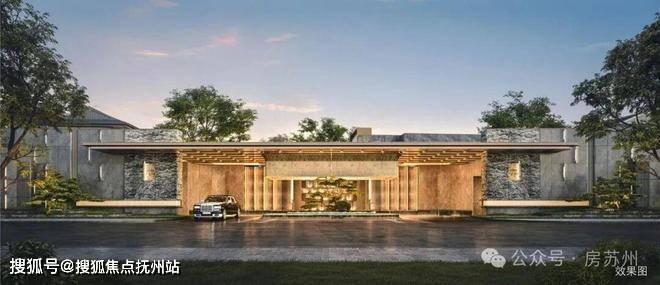 先看外立面,三段式经典构图,融合苏式屏风,用大面积玻璃局部点缀奢石,顶部采用东方屋檐的建筑形制,尽显东方之美。