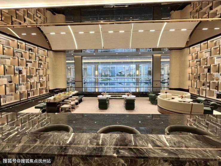 “和悦荟”大堂是一个大的下沉式书吧,背景是大落地窗及身后的大泳池,泳池正对面又是下沉式花园,视野通透、亮敞: