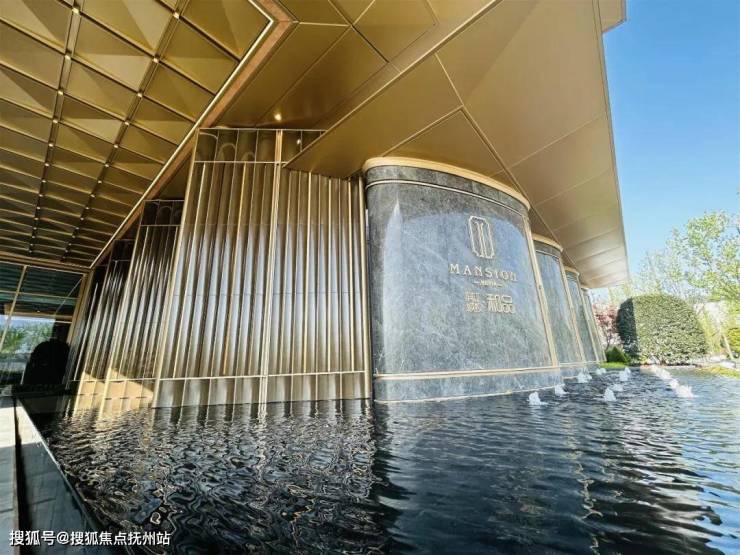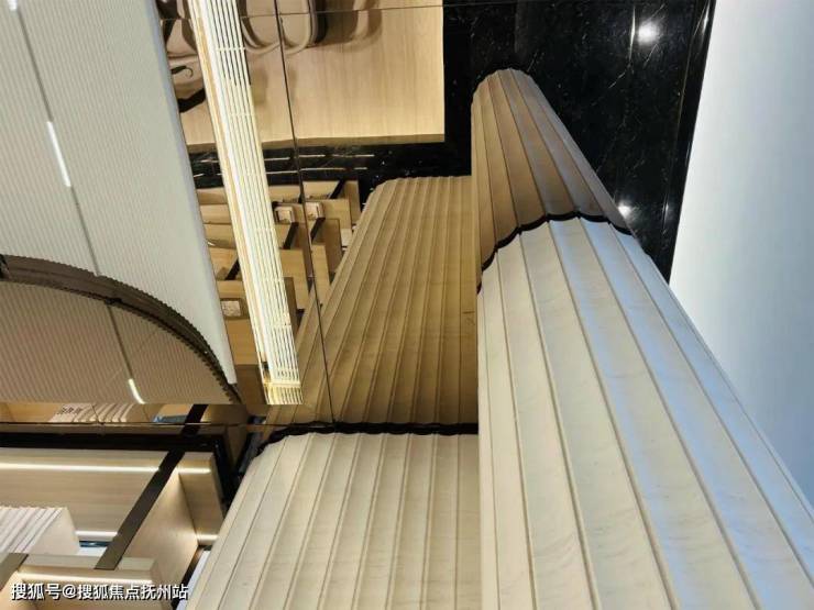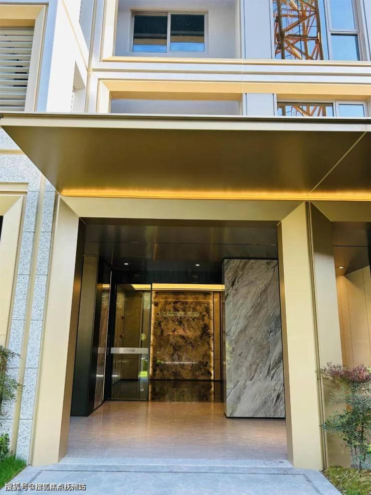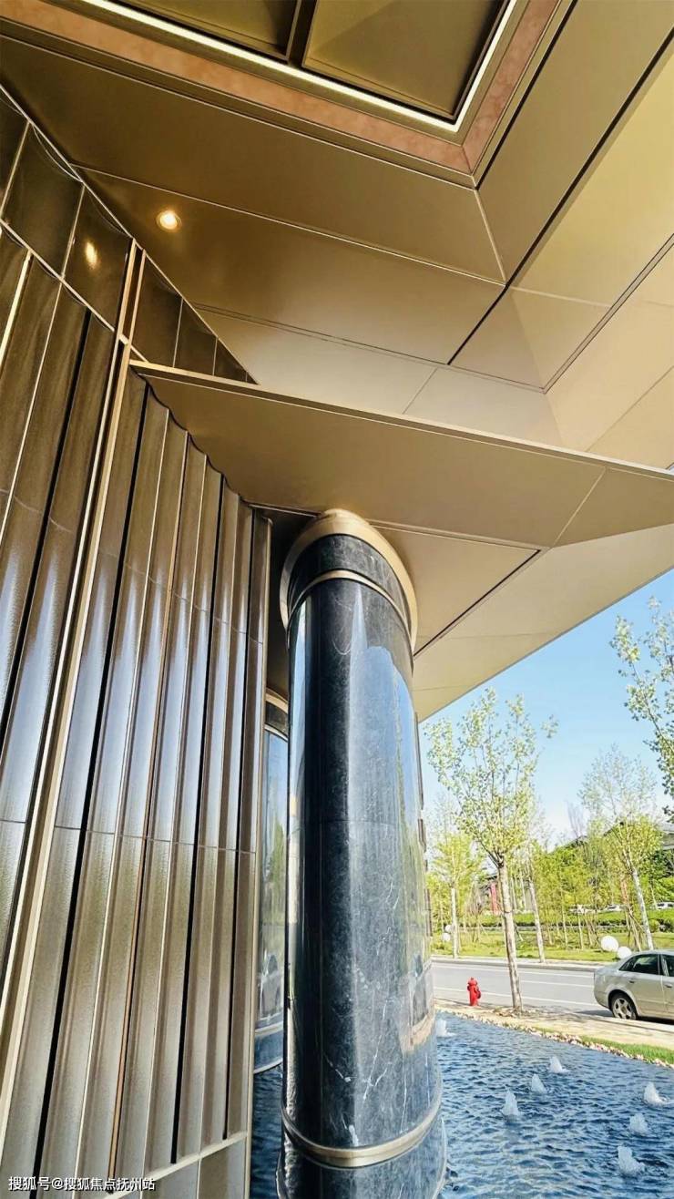 回到地面架空层,楼层单元的门厅大量采用金色铝板做装饰,与楼上的金色画框相映衬: