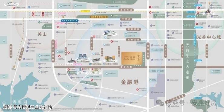 项目位于项目位于东湖高新区金融港板块,距离三环线直线距离约3.1公里,属于三环外。