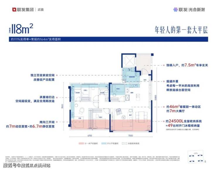 产品端,项目以“超四代宅”标准,打造建面约69–118㎡先锋三至四房,实现超110%空间实得率。设计上以“越住越大的家”为理念,通过承重墙归边、烟道外置、S墙设计、玄关外置+入户花园等创新设计,有效提升空间灵活性与收纳效率,支持从单身、二人世界到多代同住的空间动态调整,省去了家庭在不同周期的高额换房成本。未来首开的1#、5#楼涵盖82㎡小高层边户、118㎡独梯独户边户等稀缺产品。