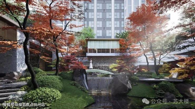 约500㎡社区门庭,双瀑环抱——聚财守护之意,尊享大气归家礼序