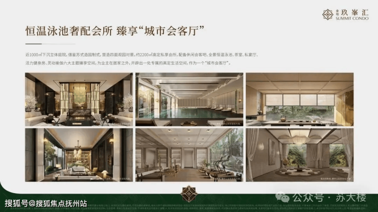 约2200㎡高定私享会所,配备休闲会客吧、全景恒温泳池、茶室、私宴厅、健身房、瑜伽室六大主题空间