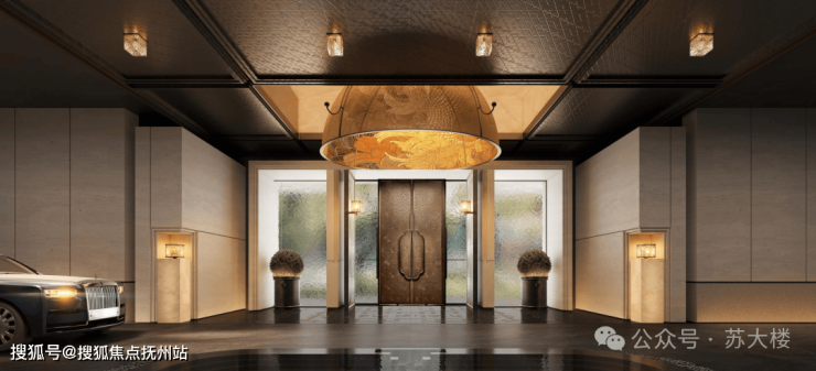 总长约88米、苏州首座大尺度流光造型宝顶及铂金长屏地标门厅
