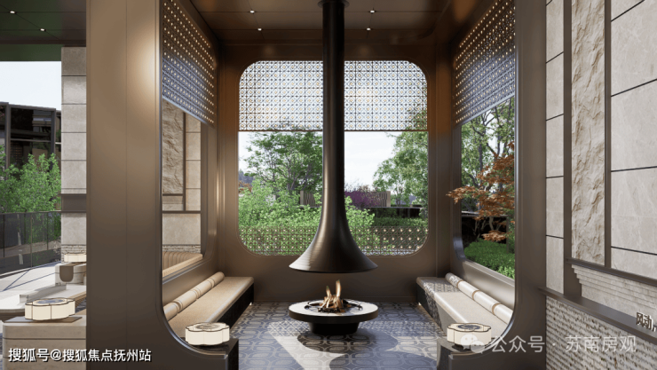 高端社区配会所不稀奇,但咏月台将其打造成了一处超380㎡的下沉式庭院会所。