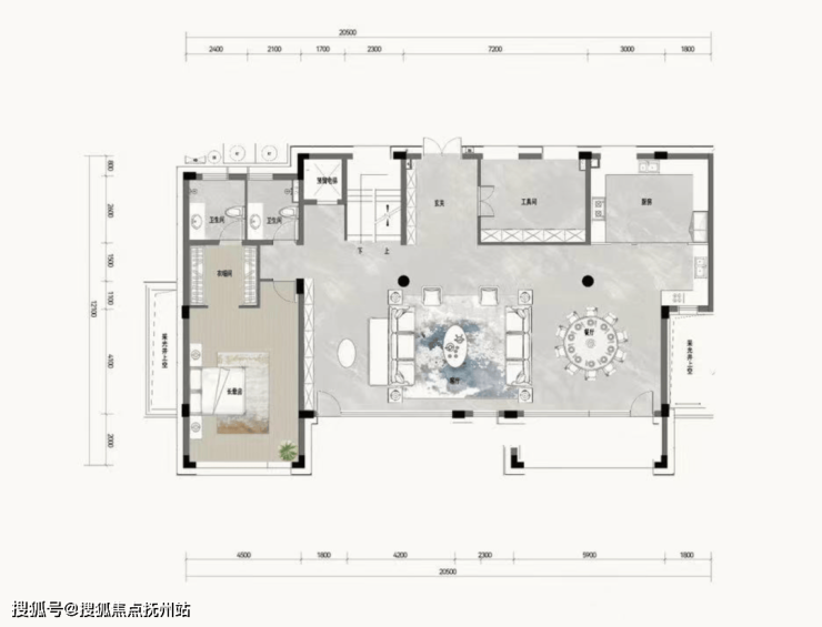 在别墅产品中,以空间重组与动线修正进行价值感激活,将尺寸不佳的北次卧套房改造为多功能房间;以15.2-20.5m超大开间尺度、迎合现代人居实际需求,解决别墅窄开间大进深的痛点;优化300-400㎡地下室灵动空间,配置双采光井及预留卫生间。