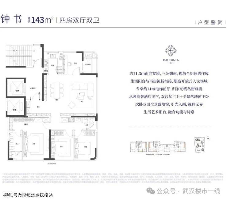 招商紫荆府包含4栋31-32层高层住宅,预计首开1号楼建面约143平房源。