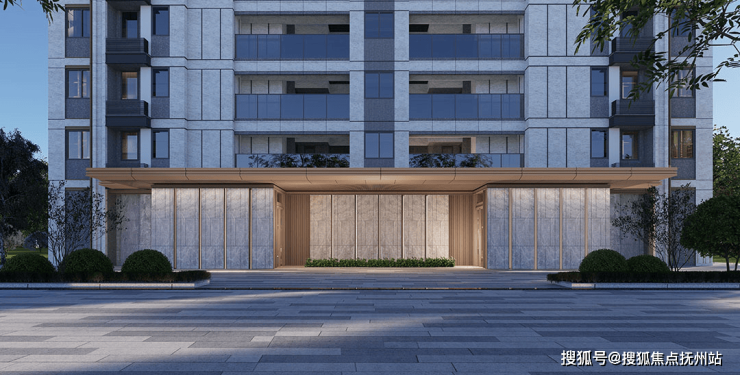 国贸虹桥璟上售楼处电话:400-1788-336社区外立面大面采用仿石多彩漆和浅灰色玻璃;层间采用装饰金属线提升建筑整体感和精致度,顶层外挑飘板使得建筑立面体块清晰,层次丰富。