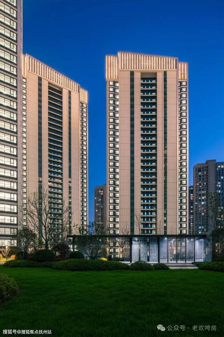 楼体公建化外立面,呈现高级的灰蓝色,与蜿蜒流淌的江水相映成趣。大面积的LOW-E玻璃,不仅提升了建筑的现代质感,还在光影变化中与周边项目形成了鲜明的视觉对比,豪宅地标感十足。