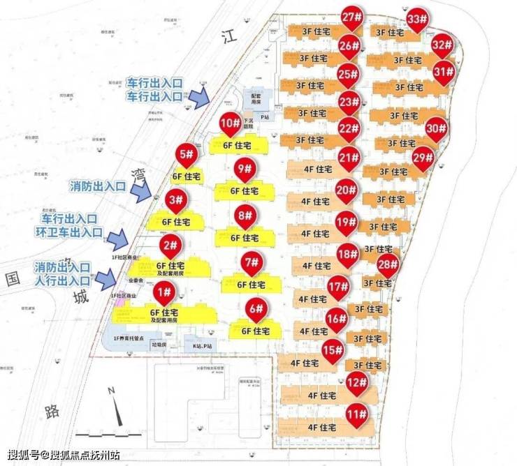 (2)沿河布局:一线临河道+绿化的楼栋总共17幢。采取了东高西低的策略,其中东侧和北侧7字型排布3F联排别墅,其后依次布局4F叠墅与6F洋房,使前排建筑不遮挡后排视野,超过半数楼栋可享受水系与公园景致。