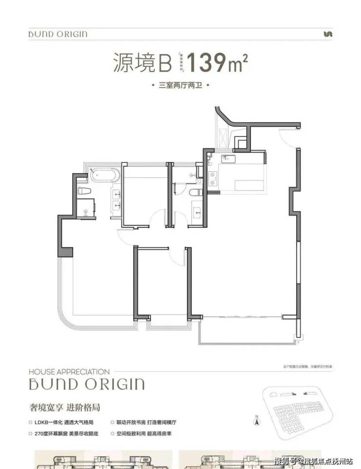 B户型是3房2厅2卫格局,三开间朝南+LDKB一体化+奢阔宽厅+全卧室带飘窗+主卧套房设计+动静分离+主卧270度飘窗,舒适度更高。外滩源著 复兴里 销售电话:186-6709-7609√√【微信同号】