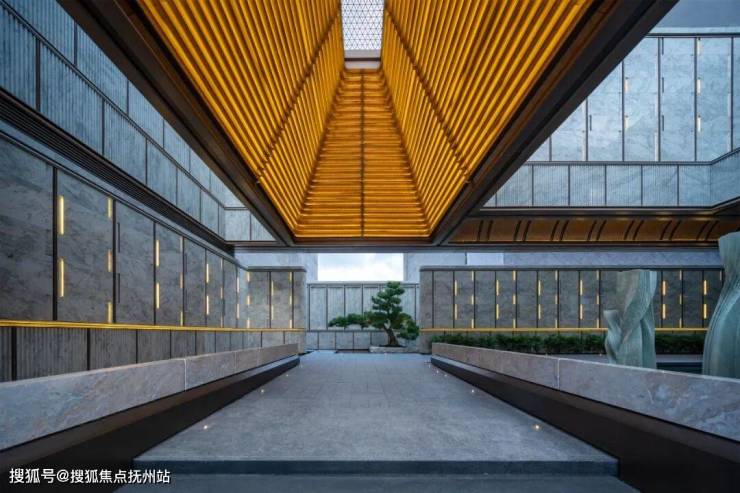 TL景观设计团队以“城市山林”为构想,为凤栖云庐打造了一座立体的景观体系。小区入口以高奢酒店为灵感,呈现约120米的恢弘界面,精选“漫云灰”石材一体筑造,并匠心融入宁波非遗青瓷艺术。整体如一幅徐徐展开的山水手卷,为归家之路注入第一重尊崇仪式感。