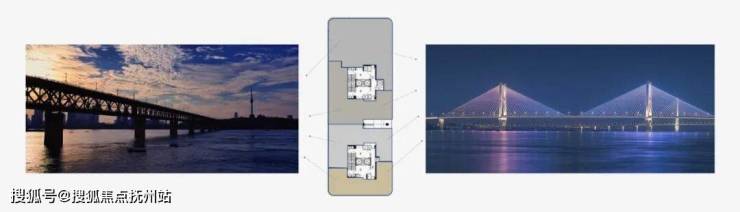 设计师溯源宋代马远《水图十二》长江万顷之灵感,以奔涌的长江浪花为题,提取符号意向融于C2组团立面的玻璃幕墙之中,形成立面窗檐与长江的形意对照。