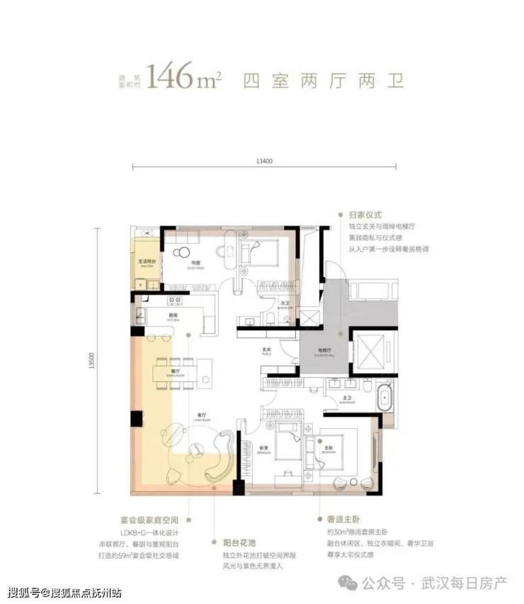 作为准四代住宅,该户型亮点非常明显: