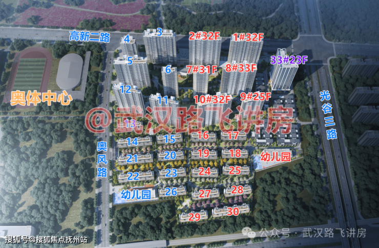 交通方面:项目距离地铁11号线光谷生物园站约1.3公里,步行大约20分钟;在高新二路与光谷三路交汇处,规划有13号线站点,就在项目门口;大概率被纳入第五轮规划。另外,项目距离有轨电车T2奥风路站只有百米的距离。自驾的话,项目周边有高新大道、高新二路、以及光谷三路,均是城市主干道,自驾出行路网发达。