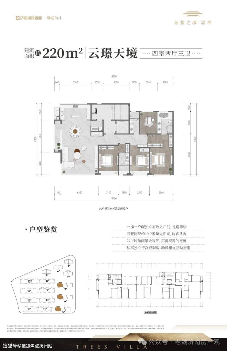 公摊:洋房16-18%,叠墅230私梯入户的14%,180和225公梯的22%
