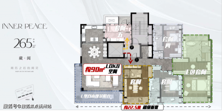 约22.5米南向面宽+270°L型环幕阳台+约90㎡LDKB一体化,实际感观比想象中更惊艳!