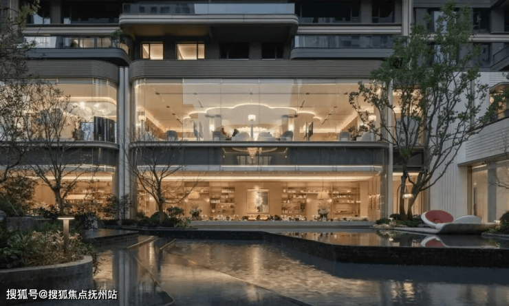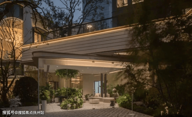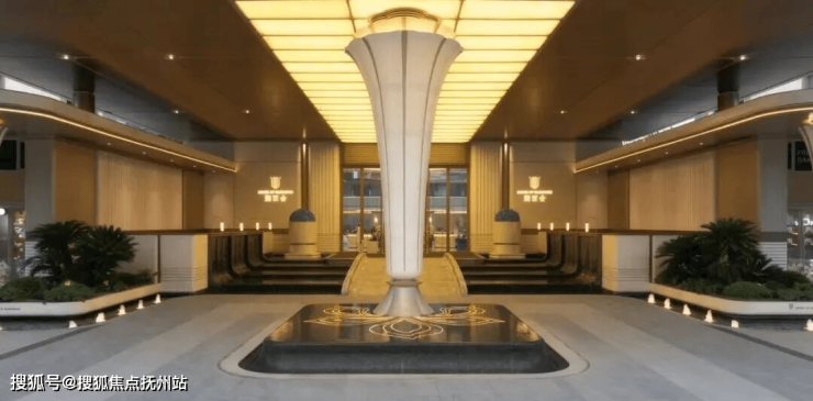 此外,水景、奢石、灯光,采用浅琥珀色的暖色调和,成为三种永恒的陪衬。一条透光云石参数化排布,直抵大门,绿城·润百合的LOGO镶嵌其上。