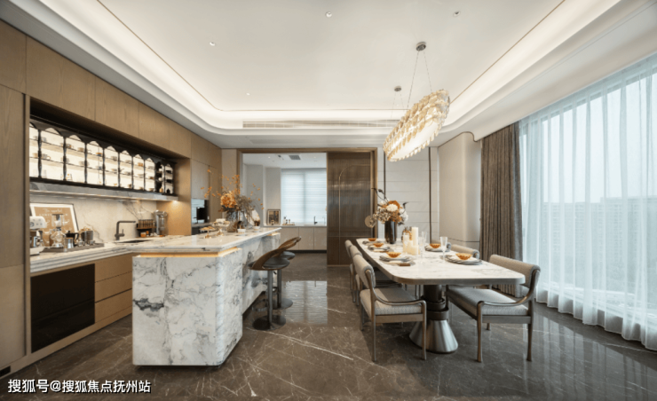 以“海派东方”风格设计的建面约322㎡摩登户型中,中西双厨的巧妙布局,是生活仪式的完美起点。 西厨区一座360°环形复合功能岛台,不仅是料理的操作中心,更成为家庭的社交枢纽。清晨的咖啡、午后的甜点、晚间的轻食,皆可在此从容完成。