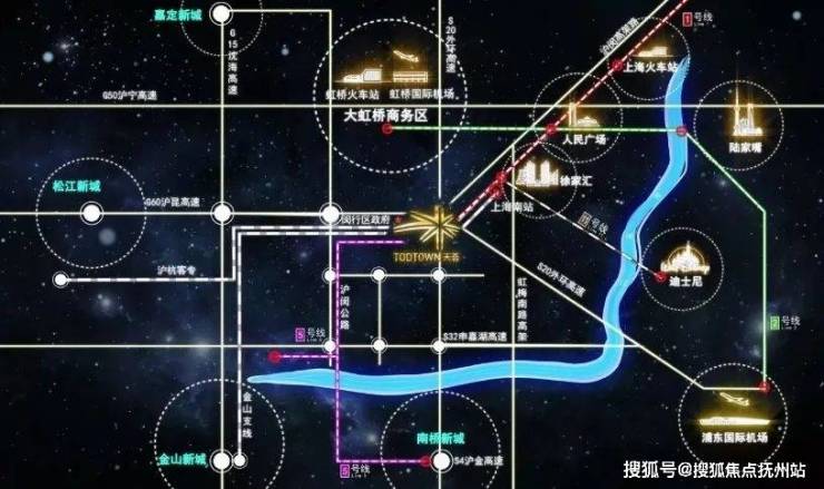 TODTOWN天荟堪称上海TOD王牌产品,位于莘庄枢纽地铁1号线、5号线、沪杭铁路、金山支线正上盖。临S20外环高速、S4沪金、G60沪昆、沪闵高架,是虹桥南拓展带及沪杭连接带,项目南北广场公交枢纽20余条公交线路。