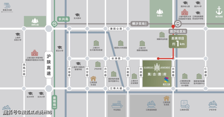 「高速交通」:由长江隧道约7.8公里即可到达G20、G40、上海绕城、五洲大道等,距金桥约25公里、速达陆家嘴及各大交通枢纽。
