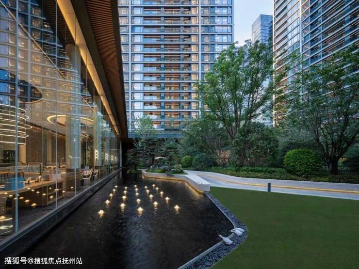 景观则为现代都市度假风格配套,园区绿意与建筑的完美配合,减弱超高层建筑的压迫感,增加园区使用的舒适度,达到居则悦的品质、归则隐的自然,给予客户极致的居住体验。