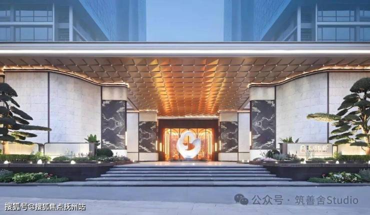40 米星级酒店式主门,以奢石潮韵为魂,重塑江海之城归家仪式新标杆。