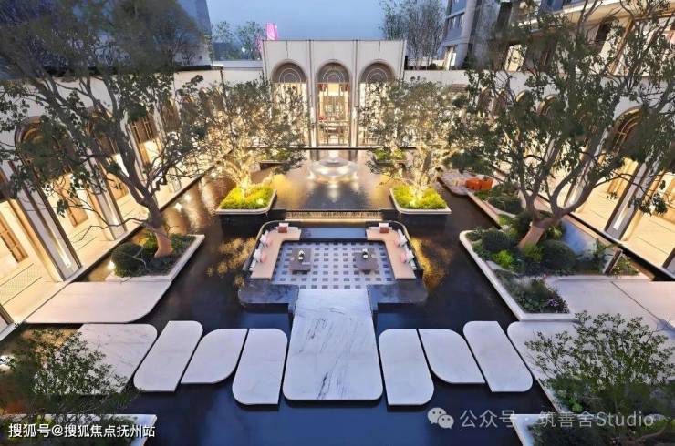 项目利用约 5 米整体台地高差,打造板块唯一约 5.3 米深、约 650㎡下沉庭院,是示范区景观核心亮点,打破平面园林单调感。海派轻奢 + 度假酒店风,借鉴曼谷嘉佩乐顶奢酒店泳池园林灵感,打造板块首个下沉双戏水池综合体,立体叠景、亲水沉浸式体验。下沉庭院为围合式私密庭院、亲水休闲廊桥、镜面静水面、四季花境乔木,移步异景,隔绝外界喧嚣。全冠移植成年乔木、四季常绿灌木、层次花境;弧形拱廊、弧形水景、圆角景观小品,柔和精致,海派优雅气质贯穿始终。
