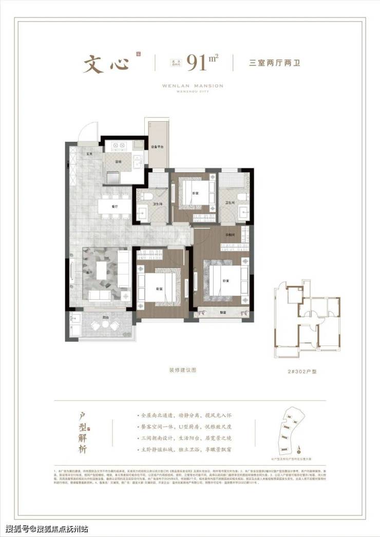 从户型上看,文澜府邸的人才房均为建面约91㎡户型,根据落位不同,分为经典三房与边厅三房。