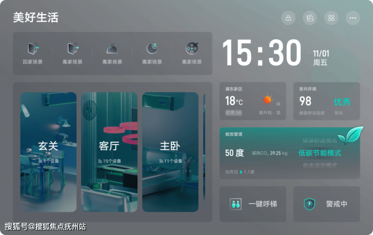 联合复旦研发的“空气盒子”环境监测系统,则可以轻松过滤PM10、PM2.5,雾霾天自动联动新风净化,梅雨季智能除湿,让室内始终维持舒怡微气候。无论外界如何变化,关上门即是清新宜居的天地。