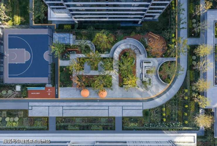 只是种树没什么了不起,难的是如何在树林中融入更多功能。绿城·凤起潮鸣几乎在每一座树林中都植入了不同的主题:「春知学堂」、戏水池、旱溪……还有树林掩映的篮球场、网球场和童玩区。这样的功能混合,可以激发你日常漫步的探索欲。