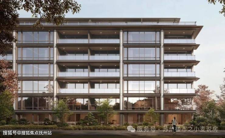 洋房立面竖向用天然石材、横向配铝板线条,刚柔并济如 “高级材料艺术品”,大幅提升窗墙比例,通透灵动且识别记忆点强。